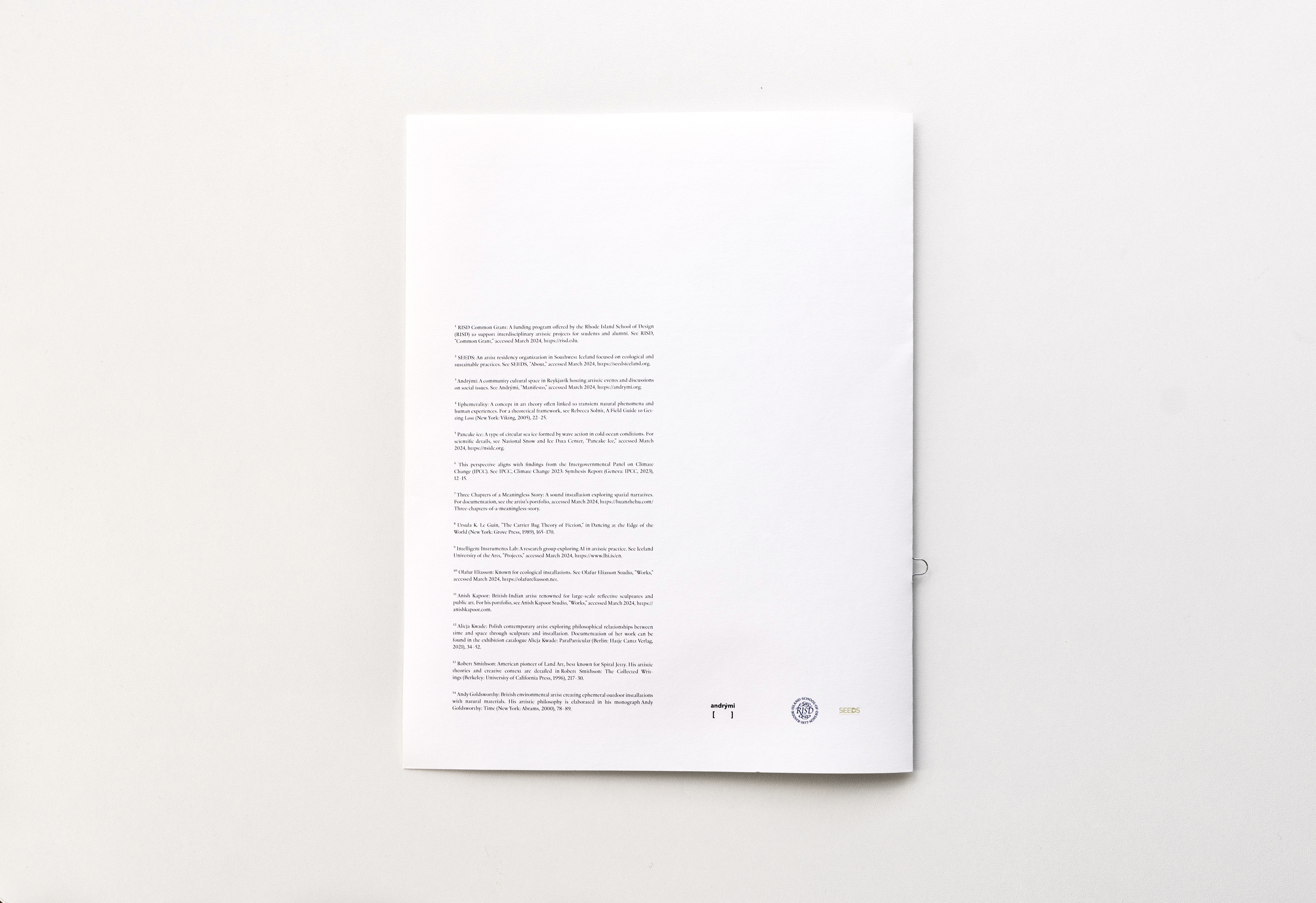 水总是吸引我,也许是因为它存在如此多种状态,以至于你永远难以将它理解为自然中某个固定的时刻。煎饼冰的形成过程就像一首难以用语言表达的诗:你无法辨别水何时凝固成冰,或者冰何时融化成水。在这两种状态的摇摆之中,声音起到了中介的作用,体现了转变的共时性。从水到冰再到水的循环变形,象征着我们这个时代最紧迫的困境 —— 不断升高的气温和自然固有平衡之间的拉锯战。这是一个让观众有机会聆听冰与水之间关系的作品,它叙述了冰所经历的溶解和重塑。通过这个作品,我希望达成一种安静而深沉的沟通,与观众在亲密的层面上与星球水体产生共鸣,并与更大的自然世界联系起来。